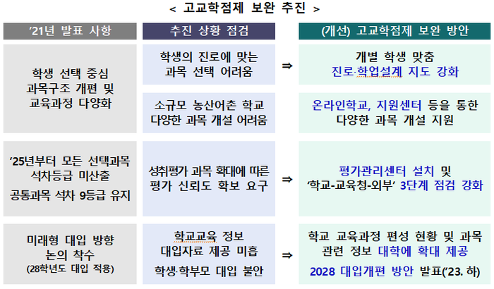 | ▲ 고교학점제 보완 추진. [교육부 제공] |