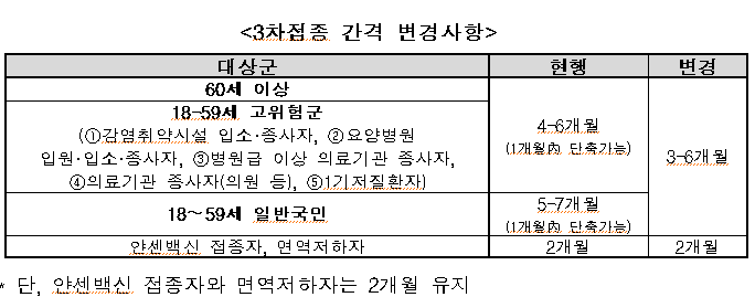 ▲ 3차 추가접종 간격 변경 사항. [중앙재난안전대책본부 제공] |