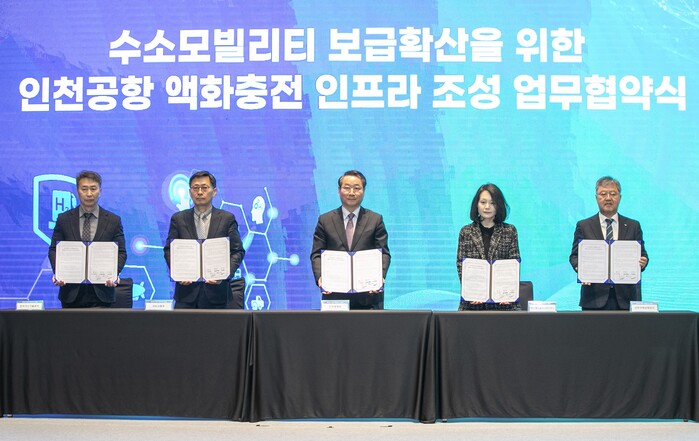 [메가경제=문기환 기자] 인천국제공항공사는 지난 22일 송도 컨벤시아에서 국토교통부, 인천광역시, SK플러그하이버스, 한국가스기술공사와 ‘수소모빌리티 보급 확산을 위한 친환경 공항 인프라 조성 업무협약’을 체결했다고 밝혔다.