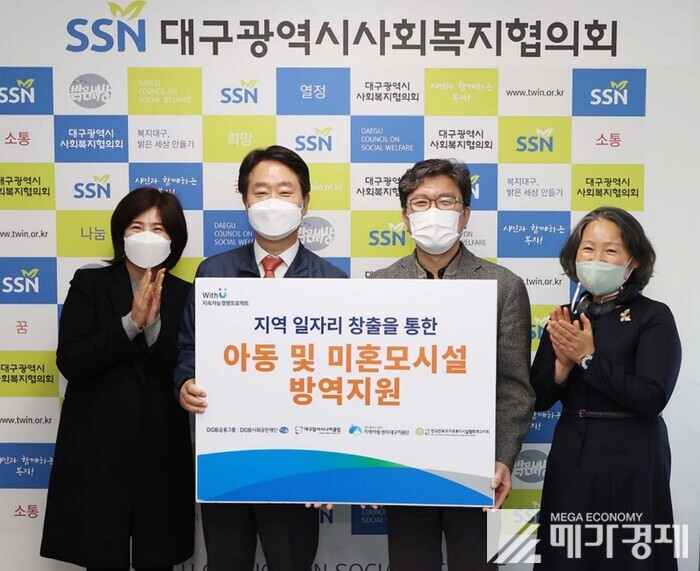 [메가경제=황동현 기자] DGB사회공헌재단(이사장 김태오)은 지역아동센터대구지원단(단장 이승희)에서 대구광역시 소재 지역아동센터와 미혼모 복지시설을 대상으로 긴급 방역지원에 대한 전달식을 가졌다고 12일 밝혔다.