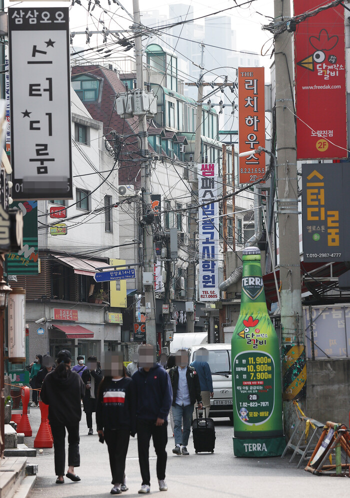 ▲ 사회적 거리두기 1단계 하향 조정으로 대형학원 운영이 재개된 12일 오후 서울 동작구 노량진 학원가 일대에서 고시생과 시민 등이 점심시간에 이동하고 있다. [사진= 연합뉴스] |