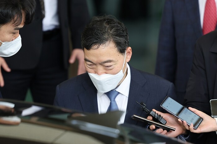 ▲ 문재인 대통령은 이날 이른바 '검수완박'(검찰 수사권 완전 박탈) 입법에 반발하며 물러나겠다는 뜻을 밝힌 김 검찰총장의 사의를 수용했다. 사진은 김오수 검찰총장이 6일 오전 서울 서초구 대검찰청을 나서고 있는 모습. [서울=연합뉴스] |