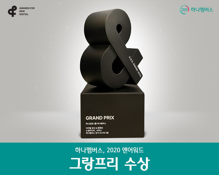 [메가경제=최낙형 기자] 하나금융그룹은 그룹 통합 멤버십 프로그램인 ‘하나멤버스’가 ‘2020 앤어워드(Awards For New Digital Award)’ 디지털 광고&캠페인 부문 중 소셜미디어 서비스 분야에서 ‘그랑프리’를 수상했다고 4일 밝혔다.