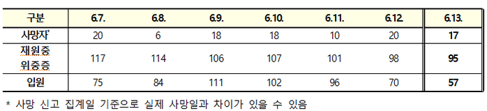 전날 세상을 떠난 코로나19 확진자는 17명으로 직전일보다 3명이 적었다. 일일 사망자 수는 지난 4월 29일(136명) 이후 45일 연속 두 자릿수를 보이고 있다.