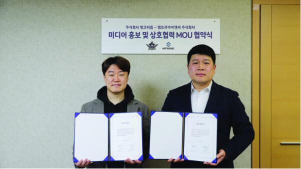 ▲ 황현기 펑크비즘 대표(왼쪽)와 김종열 엠트리아이앤씨 대표의 MOU 협약식 |