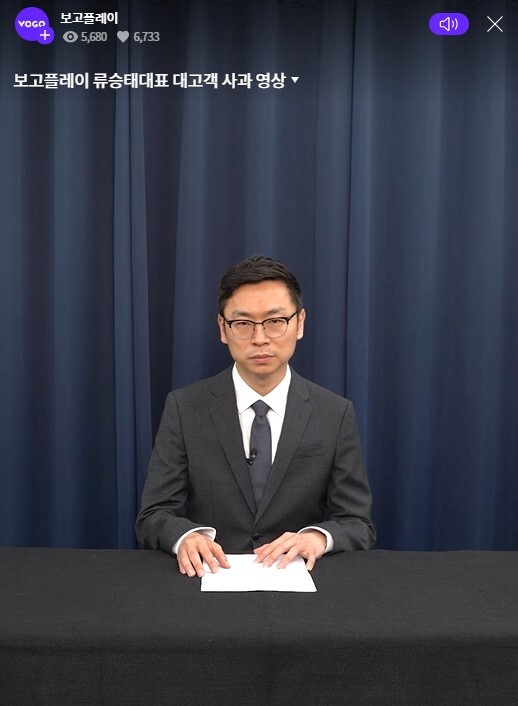 ▲ 류승태 보고플레이 대표의 대고객 사과 영상 [보고플레이 홈페이지 캡처] |