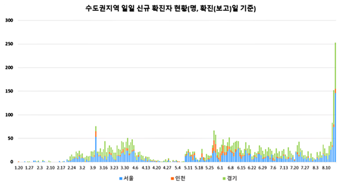 서울 성북구 사랑제일교회와 경기 용인시 우리제일교회 등 수도권 교회를 고리로 감염 전파가 급속도로 번지고 직장과 커피점, 학교 등 일상 곳곳에서도 동시다발적으로 감염이 발생하면서 신규 확진자 규모가 200명대 후반을 기록했다.