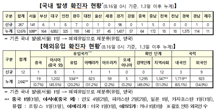 ▲ 16일 0시 기준 코로나19 국내발생과 해외유입 확진자 현황. [출처= 중앙방역대책본부] |