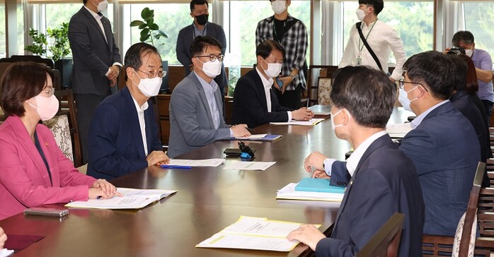 ▲ 한덕수 국무총리(왼쪽 두번째)가 22일 오후 세종시 정부세종청사에서 코로나19 방역상황점검회의를 주재하고 있다. [세종=연합뉴스] |
