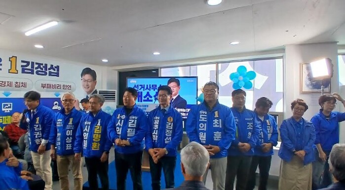 지난 25일 충남 공주시 신관동에서 열린 김정섭 후보 선거사무소 개소식에는 박수현 충남도지사 후보, 김 후보의 후원회장인 배기선 김대중재단 사무총장(14·16·17대 국회의원), 복기왕 국회의원, 박정현 전 부여군수 등 야권 주요 인사들과 충남도·공주시의원 예비후보, 지지자 500여 명이 대거 참석했다.