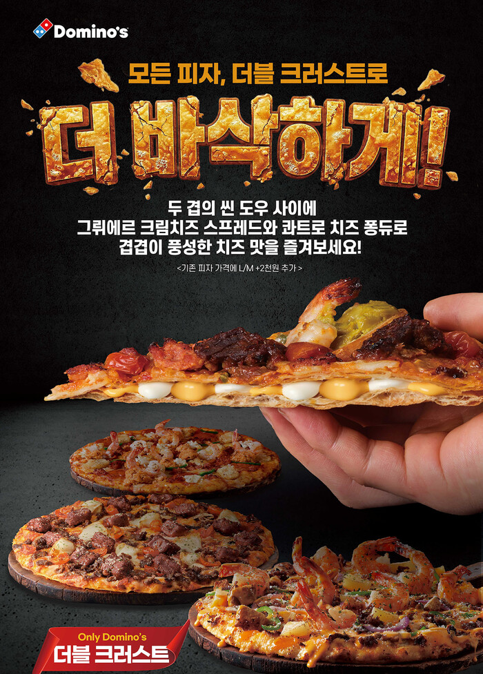 [메가경제=심영범 기자]도미노피자가 ‘더블 크러스트 도우’를 전 메뉴에 확대 적용하며 재출시에 나섰다.