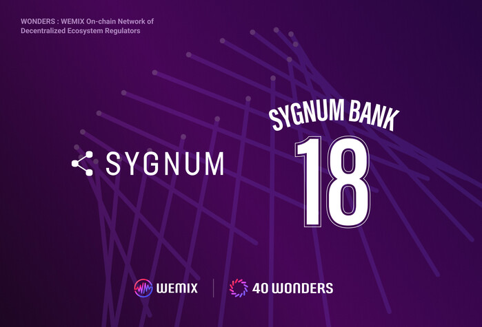 [메가경제=이동훈 기자] 위메이드(대표 장현국)가 글로벌 디지털 자산 은행 ‘시그넘(Sygnum)’을 위믹스3.0(WEMIX3.0) 메인넷의 노드 카운슬 파트너(Node Council Partner, NCP)인 40 원더스(40 WONDERS)로 영입했다.