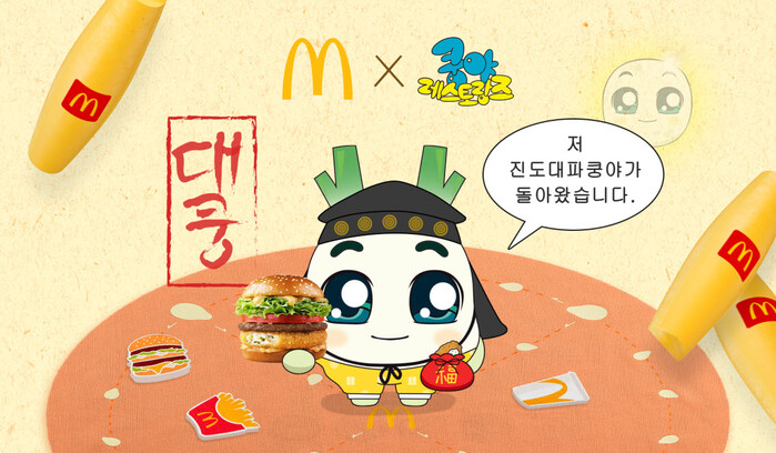 이 외에도 프로모션 기간동안 맥도날드 전국 매장 내 ‘진도 대파 쿵야’를 활용한 트레이맷(쟁반 위에 깔리는 종이), 키오스크 홍보물 등이 설치돼 색다른 모습으로 이용객들을 맞이할 예정이다.