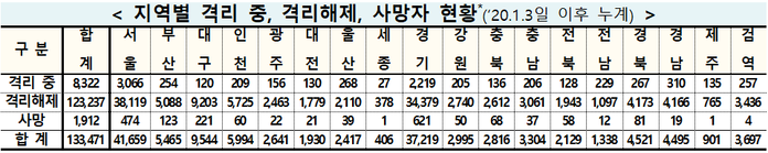 전날 하루 606명이 추가 완치돼 누적 격리해제자는 12만3237명으로, 완치율은 92.33%이다. 격리치료 중인 환자는 40명 늘어 총 8322명이다.