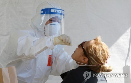 ▲ 18일 오후 강원 강릉시가 외국인 노동자 임시 선별 검사소에서 외국인을 대상으로 6차 전수 검사를 진행하고 있다. [강릉=연합뉴스] |