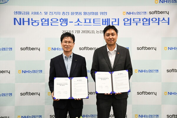 [메가경제=송현섭 기자] NH농협은행은 스타트업 상생 생태계 조성과 생활금융 확대를 위해 전기차 충전플랫폼 운영사 소프트베리와 오픈이노베이션 업무협약을 체결했다고 31일 밝혔다.