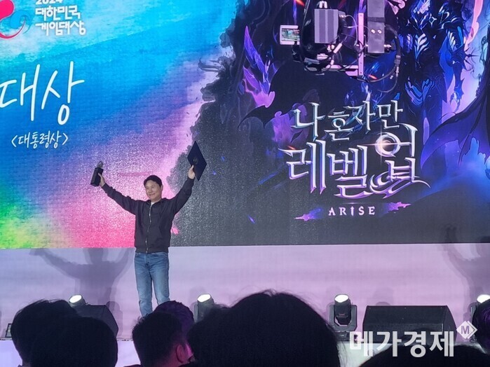 ▲권영식 넷마블 네오 대표이사가 대상 수상 기념 포즈를 취하고 있다. [사진=메가경제] |