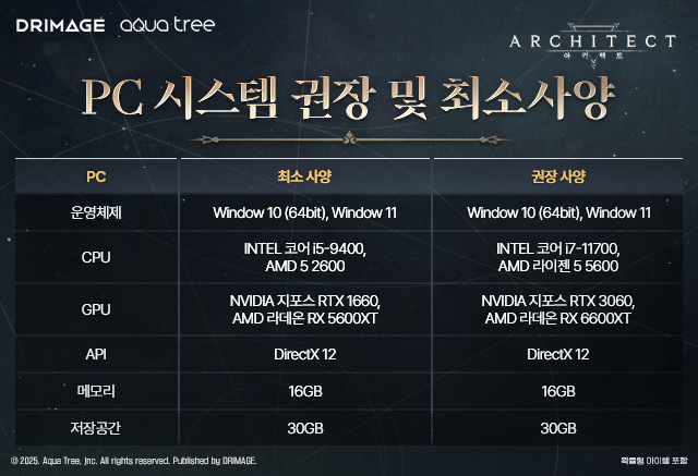 ▲ PC 최소/권장 사양 [사진=드림에이지]