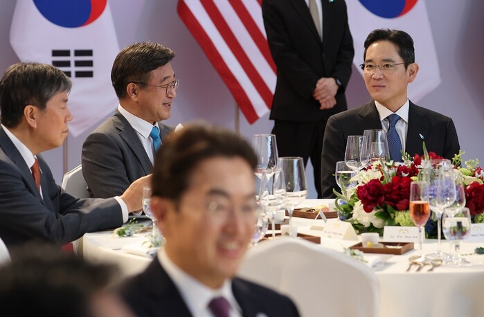 이재용 삼성전자 부회장을 비롯해 정의선 현대차그룹 회장, 구광모 LG그룹 회장, 신동빈 롯데그룹 회장, 김동관 한화솔루션 사장, 정기선 HD 현대 사장, ‘미국통’으로 알려진 방산업체 풍산의 류진 회장이 참석했다.