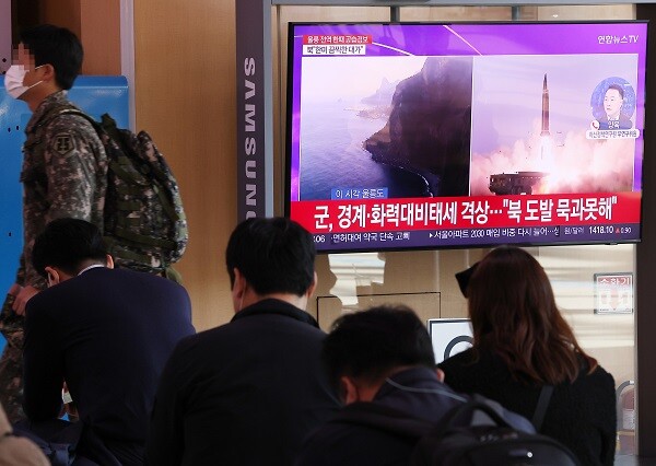 ▲ 2일 오전 서울역에서 시민들이 북한 탄도미사일 발사 관련 뉴스를 보고 있다. [서울=연합뉴스] |