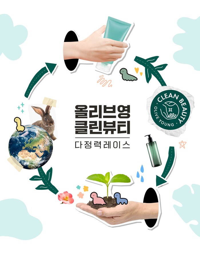 이를 위해 올리브영은 대표적인 클린뷰티 브랜드인 ▲구달 ▲닥터브로너스 ▲더랩바이블랑두 ▲라보에이치 ▲라운드랩 ▲라운드어라운드 ▲로벡틴 ▲메이크프렘 ▲비플레인 ▲수이스킨 ▲아누아 ▲아비브 ▲아워비건 ▲토리든 ▲플리프(이상 가나다 순), 재활용 혁신기업 테라사이클과 함께 컨셔스뷰티 캠페인 ‘다정력 레이스’를 전개한다.