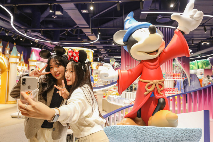 ▲ 서울시 강동구에 위치한 현대백화점 천호점 8층 디즈니 스토어에서 고객들이 기념 사진을 촬영하고 있는 모습 [사진=현대백화점] |