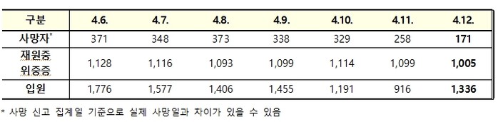 다만 위중증 환자와 사망자 수는 전날보다 줄었고, 특히 사망자는 27일만에 100명대를 기록했다.