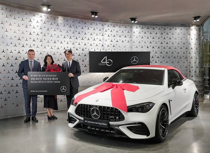 이번 인도식은 한성에디션 라인업 중 하나인 ‘메르세데스-AMG CLE 53 4 MATIC+ 카브리올레’를 구입한 고객에게 40주년 기념 한정판 모델을 전달하는 자리로 마련되었다.