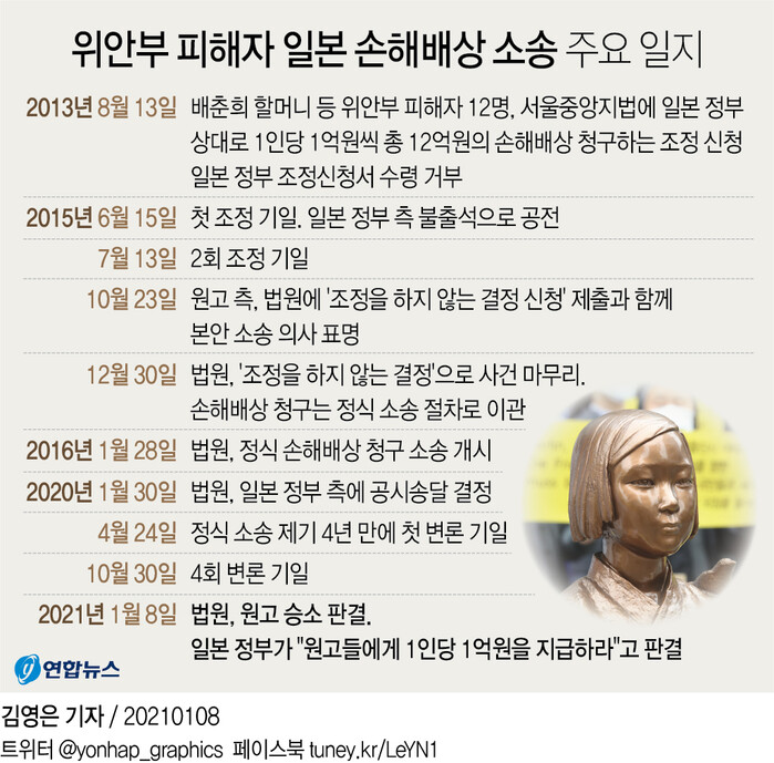 ▲ 위안부 피해자 일본 손해배상 소송 주요일지. [그래픽= 연합뉴스] |