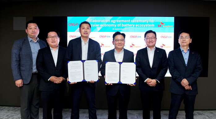 SK에코플랜트는 지난 26일 서울 종로구 본사에서 글로벌 배터리 기업인 CNGR과 '배터리 순환경제를 위한 재활용 및 소재 공급 협력을 위한 협약(CA)'을 맺고 유럽 폐배터리 재활용 시장 진출을 추진한다고 29일 밝혔다.
