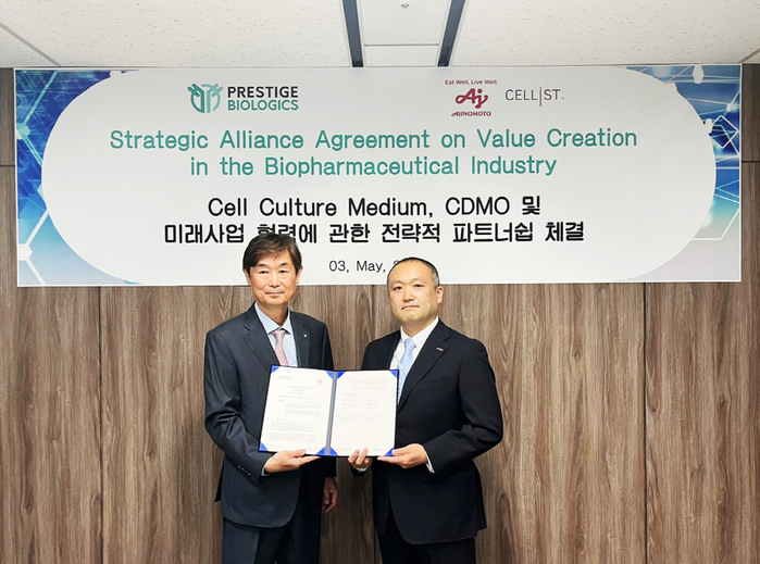 프레스티지바이오로직스 관계자는 "이번 MOU는 단순히 비즈니스 아이템간 결합과 협력을 넘어 성공적인 바이오 의약품 서플라이 체인을 함께 구축하고 얼라이언스 시스템을 확대 구축하기 위한 초석이 될 것"이라며 "아지노모도제넥신의 미디엄 사업 성장에 기여할 수 있도록 하고, 자사 CDMO 사업도 함께 성장할 수 있길 희망한다"고 전했다.