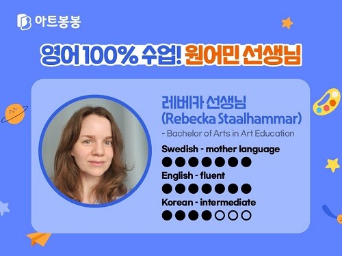 아트봉봉의 영어미술 정규클래스는 100% 영어로 진행되며, 글로벌 소통역량을 키우기 위해 미술 분야에서 검증된 전문가들이 수업을 담당한다. 주요 강사로는 미국 인테리어 디자인 학과 1위 SCAD 출신의 Stella Kim, Linnaeus University Art Education BA 출신이자 초등미술 교육 전문가 Rebecka 등이 있다.
