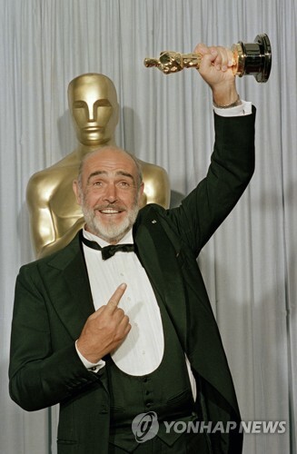 ▲ 1988년 영화 '언터처블'로 남우조연상을 수상한 뒤 오스카 트로피를 들어보이며 기뻐하는 숀 코너리. [사진= AP/연합뉴스] |