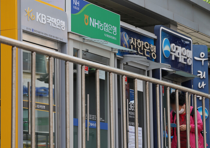 | ▲KB·신한·하나·우리 등 4대 금융그룹에서 채권자의 원리금 상환이 불가능하다고 판단해 자금회수를 포기한 대출 채권 추정손실액이 무려 1조9660억원에 달하는 것으로 나타났다. 나란히 늘어선 주요 시중은행의 ATM기들 앞으로 한 시민이 지나가고 있다. [사진=연합뉴스] |