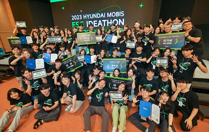 ▲ 2023 현대모비스 ESG 아이디어톤 대회 참가자들이 기념 촬영을 하고 있다. [사진=현대모비스] |