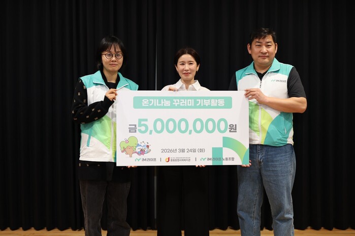 이종원 iM라이프 노동조합 위원장은 “이번 활동은 단순한 기부를 넘어 우리 주변 이웃을 보듬는 인간적 연대의 표현”이라며, “조합원들의 진심이 담긴 기금이 이웃들에게 100% 따뜻한 봄기운으로 전해지길 바란다.”고 소감을 밝혔다.