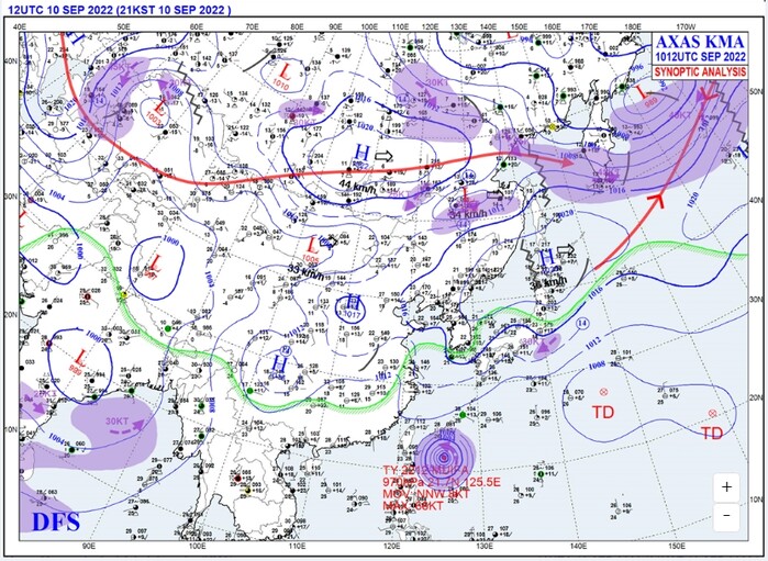 | ▲ 10일 기준 한반도 주변 분석일기도. [출처=기상청 날씨누리] |