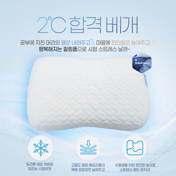 이번에 출시하는 수험생을 위한 '2℃ 합격베개'는 공부에 지친 수험생의 머리에 열을 즉각적으로 내려줄 수 있는 듀라론 냉감 커버로 머리를 시원하게 한다는 게 아임슬리핑의 설명이다.