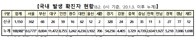 ▲ 2일 0시 기준 코로나19 국내발생(지역발생) 확진자 현황. [출처=중앙방역대책본부] |