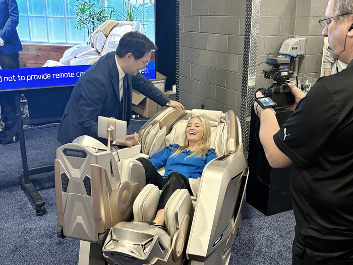| ▲ CES 사무국 관계자가 바디프랜드 '팬텀 네오'를 체험하고 있다 |