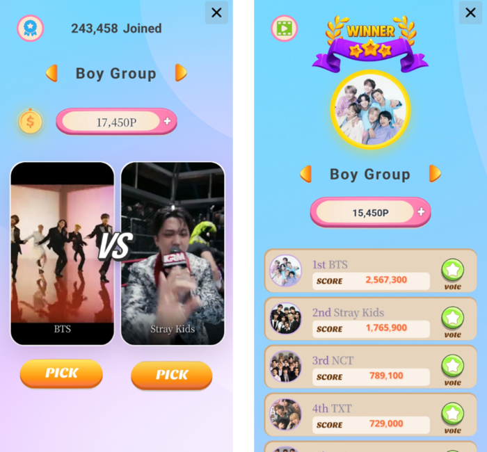 '케이팝 데몬 헌터스(케데헌)'의 흥행으로 K-POP 열풍이 더욱 거세지는 가운데, 시미픽은 이상형 월드컵 방식으로 K-POP 가수들의 뮤직비디오를 1대1로 비교하며 투표하는 방식을 채택했다. 론칭 15일 만에 25만명이 참여하는 등 폭발적인 반응을 얻고 있다.