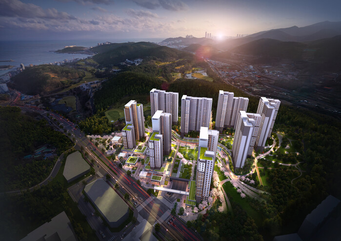 사업지는 부산시 기장군 기장읍에 있으며, 연면적 14만 1154㎡에 전용면적 84㎡ 단일 평형 886세대로 구성된다.