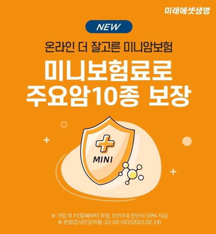미래에셋생명이 온라인 더 잘고른 미니암보험을 선보였다. 국내 최저 수준 월 1~2천 원의 지극히 저렴한 보험료로 주요암을 모두 보장하는 가성비 좋은 핀셋상품으로 주목받고 있다.