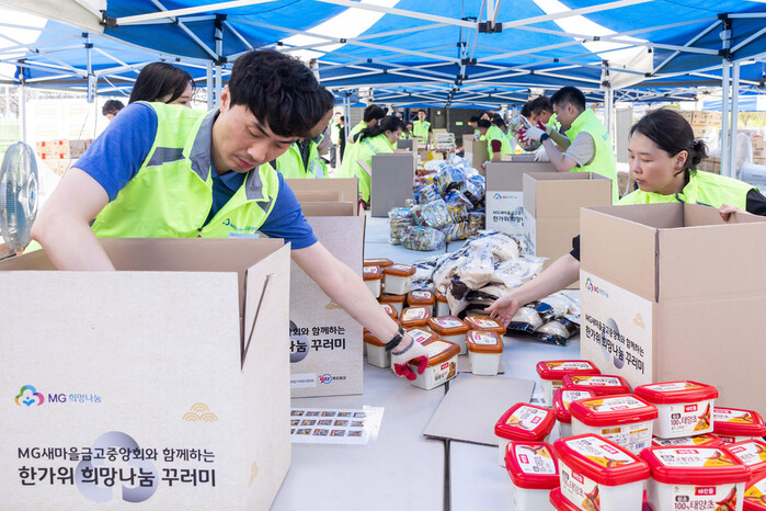 올해 추석 명절에 앞서 펼쳐진 이번 봉사는 성동구 용답동 서울잇다푸드뱅크센터에서 새마을금고중앙회 임직원 40여명이 참여했다. 이들 봉사자는 1억원상당 한가위 꾸러미 1000세트를 직접 제작했다.