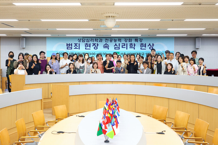 | ▲ ‘범죄 현장 속 심리학 현상’ 특강 후 단체 기념사진을 촬영하고 있다. [사진=서울사이버대학교] |