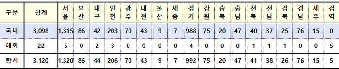 신규 확진자 중 전국 곳곳에서 발생한 국내발생(이하 지역발생)은 3098명으로 전날보다 90명이 적지만 해외유입은 22명으로 전날보다 4명이 많다.