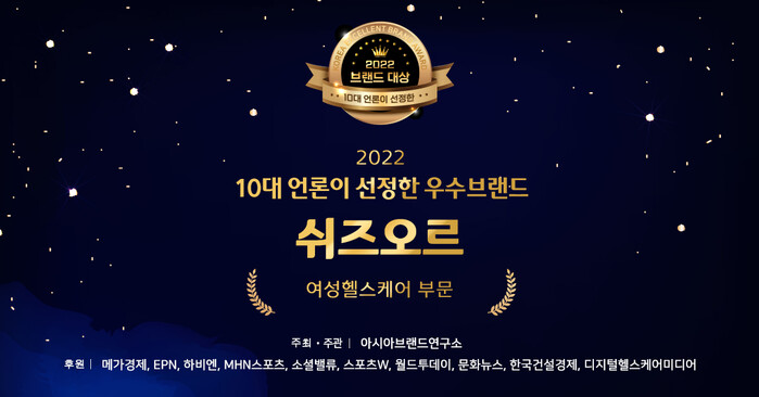 [메가경제=이석호 기자] 중년여성 전문 솔루션 쉬즈오르는 국내 10대 언론이 선정한 2022년 대한민국 브랜드대상에서 '여성헬스케어' 부문 우수 브랜드로 선정됐다고 19일 밝혔다.