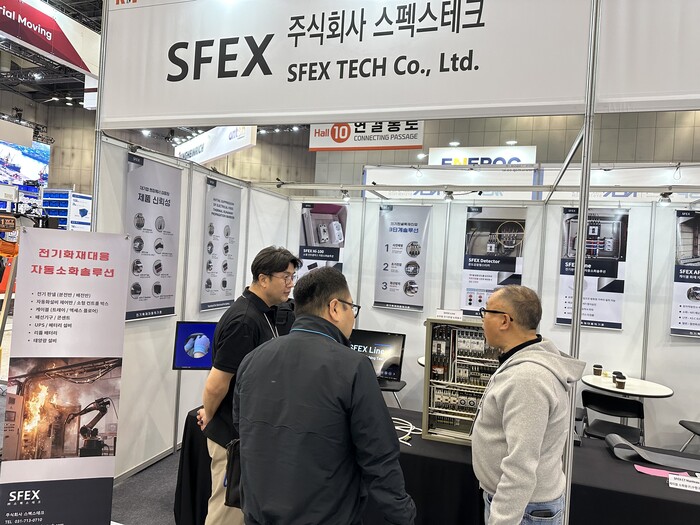 이와 함께 소형 전기설비 내부 화재 대응을 위한 스티커형 자동소화용구 ‘SFEX Hi-100’도 전시된다. 해당 제품은 분전반, 제어반, 통신박스 등 밀폐된 전기설비 내부에 적용되어 화재 발생 시 별도의 전원 없이 자동으로 소화약제를 방출해 초기 화재를 진압하도록 설계됐다.