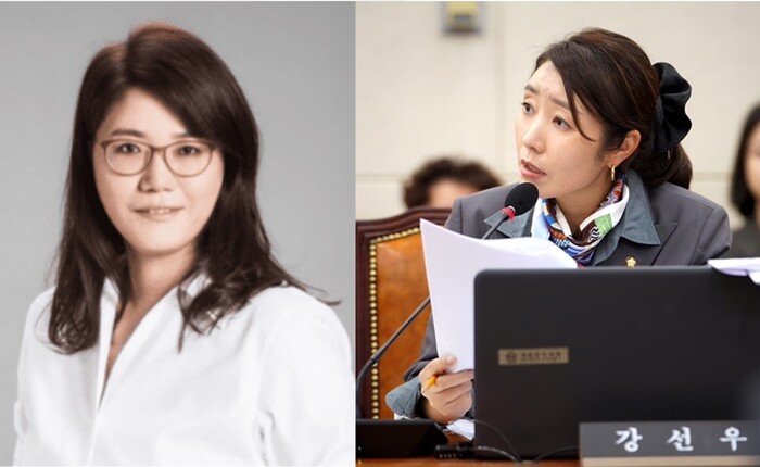 | ▲ 김소연 피씰엘 대표, 강선우 의원이 국정감사에서 피씨엘과 관련한 의혹을 제기하고 있다. [사진=피씨엘, 연합] |