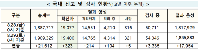 ▲ 29일 0시 기준 국내 신고 및 검사 현황. [출처= 중앙방역대책본부] |